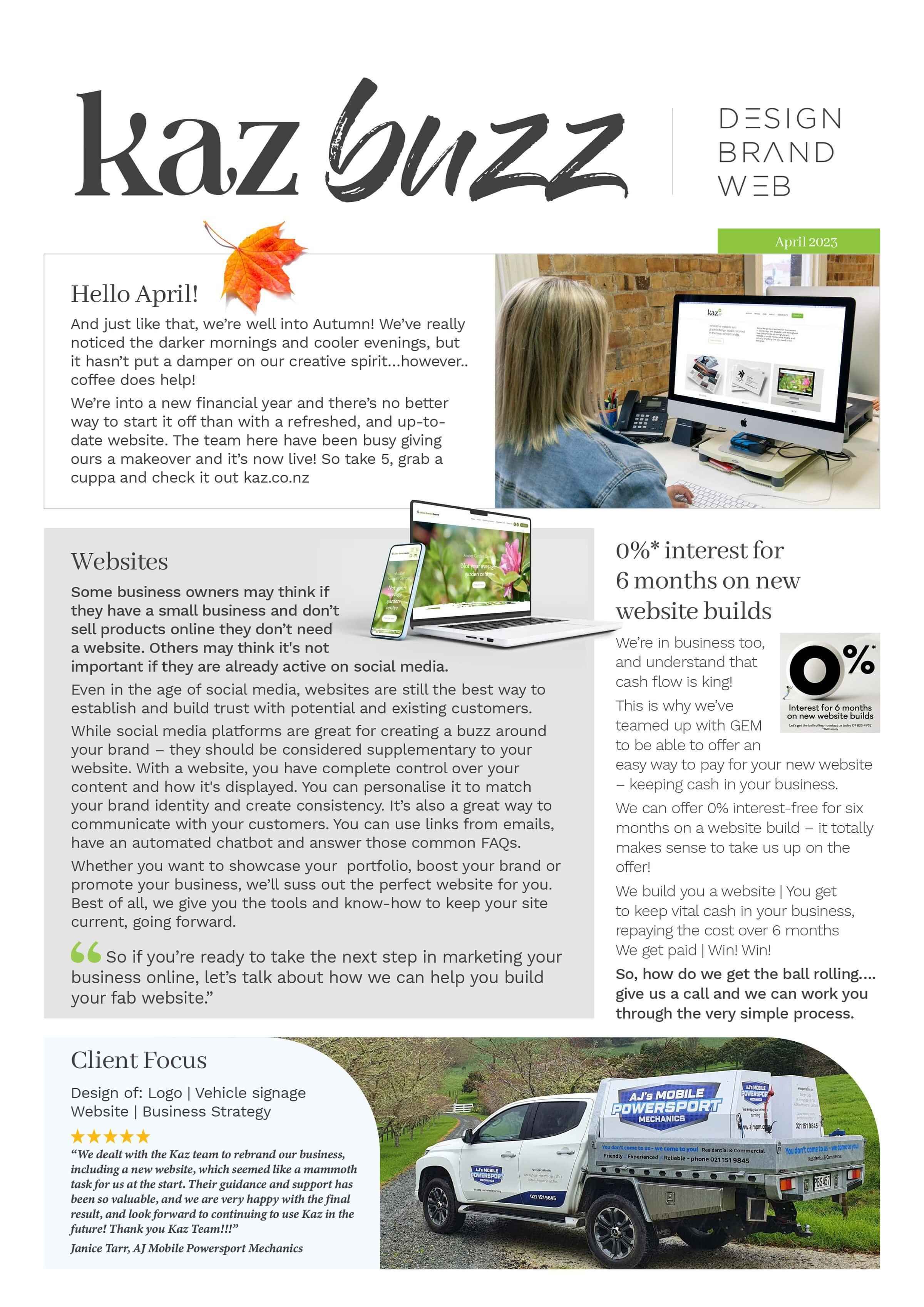 We're excited to share with you the latest updates at Kaz, exciting news about our clients' design | brand | web projects, new products, and exclusive offers.